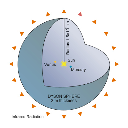 There’s been some speculation that astronomers may have actually detected emissions from stars where Dyson spheres are currently under construction. (Or, more accurately, were under construction whenever the light we’re seeing was emitted from the stars, thousands of years ago most likely.) These stars are acting strangely, their brightness dimming periodically in similar fashion to the dimming that occurs when a planet in orbit passes between them and us, but to an extent that the object causing the dimming is way larger than a planet could actually be. You can read more about this interesting mystery here and here.
